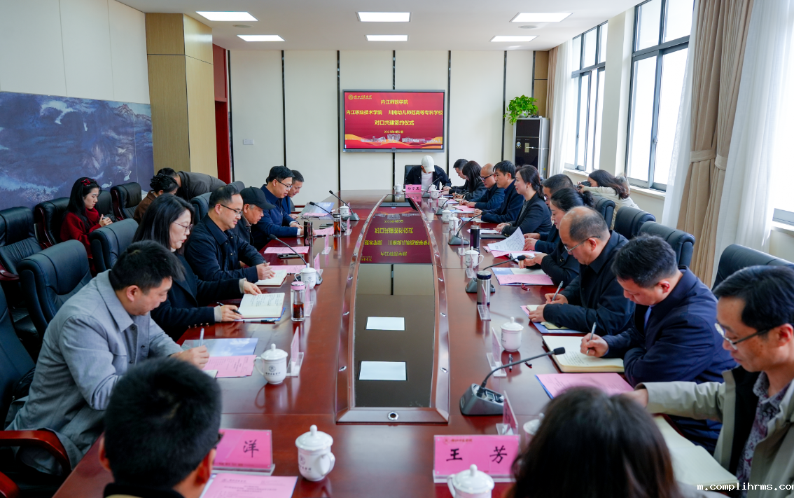 4月2日,我校与内江师范学院签订对口共建协议。内江师范学院党委副书记、校长陈晓春,党委常委、副校长胡金朝,党委常委、组织部部长张志勇,我校党委副书记、校长李达军,党委委员、副校长王雪媛,党委委员、组织部部长郑勇,党委委员、党政办公室主任徐天福,以及两校相关部门负责人参加签约仪式。胡金朝主持签约仪式。