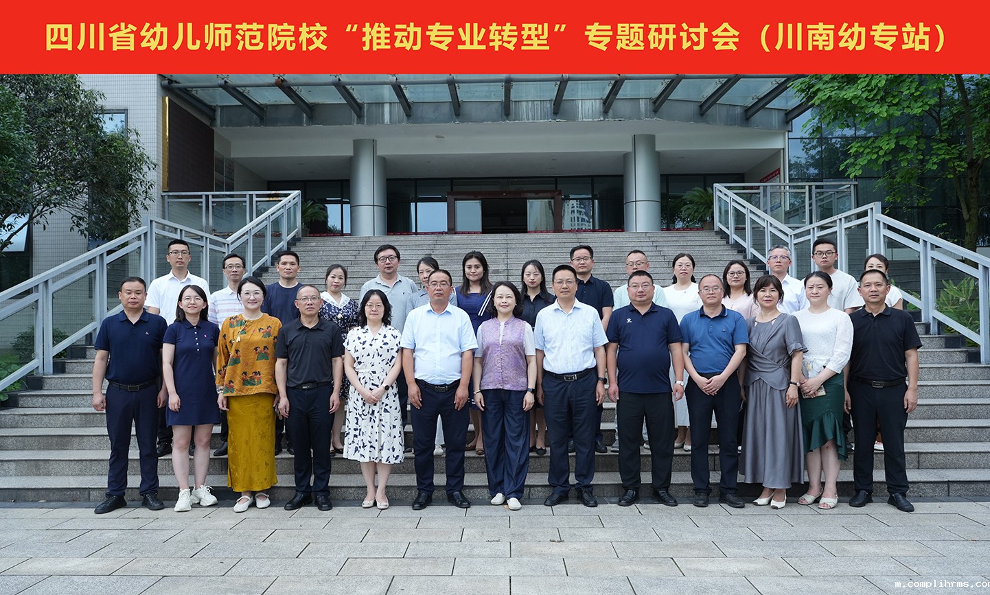 6月19日,四川省幼儿师范院校“推动专业转型”专题研讨会在bv伟德官方网站(简称“川南幼儿师专”)举行。本次研讨会是高校毕业生就业协会学前教育与托育服务工作委员会携手四川四所幼专联合举办校际现场调研活动之一。高校毕业生就业协会学前教育与托育服务工作委员会学术委员会副主任委员兼秘书长杨洁、副理事长万雯雯、副秘书长王青,中国旅游协会研学旅行分会秘书长马亚杰,川北幼专党委副书记、校长冯莎,西昌民族幼专党委副书记、校长赵波,四川幼专党委副书记、副校长杨达,川北幼专党委委员、副校长罗勇,川南幼儿师专党委书记段永清,党委副书记、校长李达军等党政班子成员及四所幼专有关部门负责人参加活动。